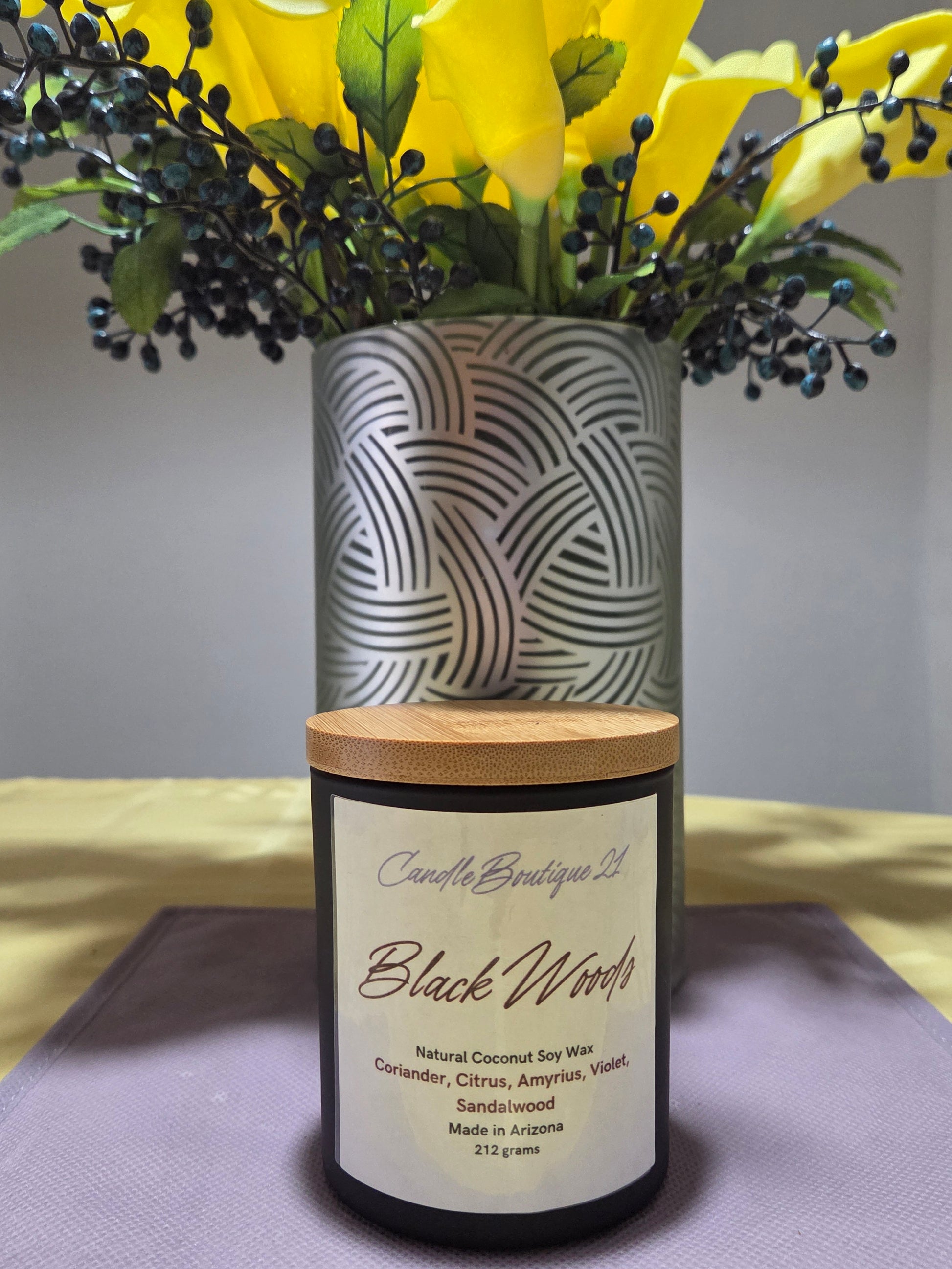 BOUTIQUE CANDLE-BLACK WOODS